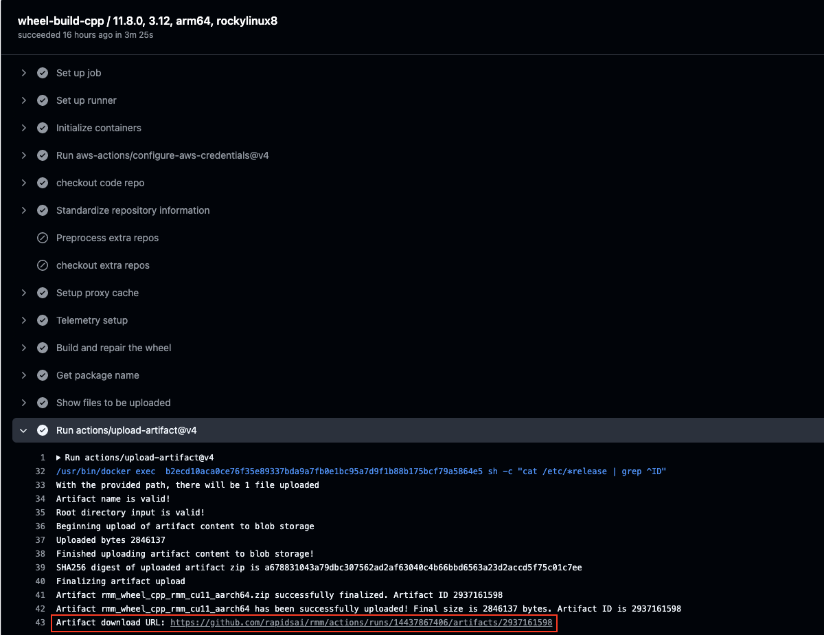 • {artifact-name} = unique identifier for an artifact within one workflow run (e.g. rmm_conda_python_cuda12_py312_x86_64)